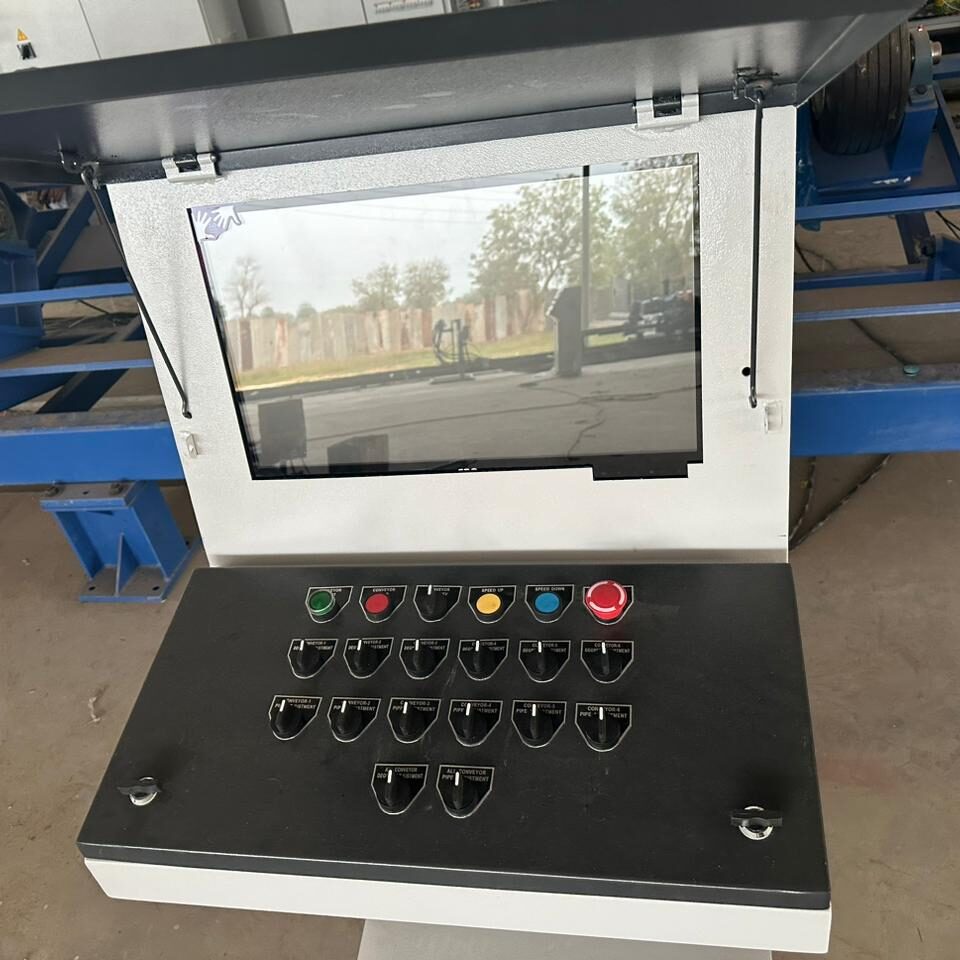 Automatic conveyor adjustment as per pipe size controlled, Siemens PLC central control computer, Interactive human-computer interface screen.